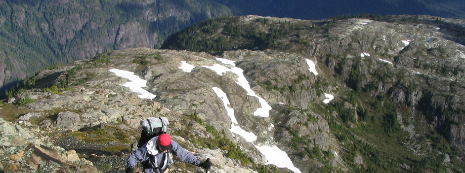 A stunning five-day traverse of the dramatic eastern edge of the mountains of Strathcona Park. Once we leave the forest in Paradise Meadows to head into the alpine, we barely touch tree-line again for the entire trip. To the west lie the mountains of Strathcona Park, and to the east, the ocean and the Coast Mountains. This is an arduous and very rewarding trip for those with a sense of adventure. Best completed July through September.